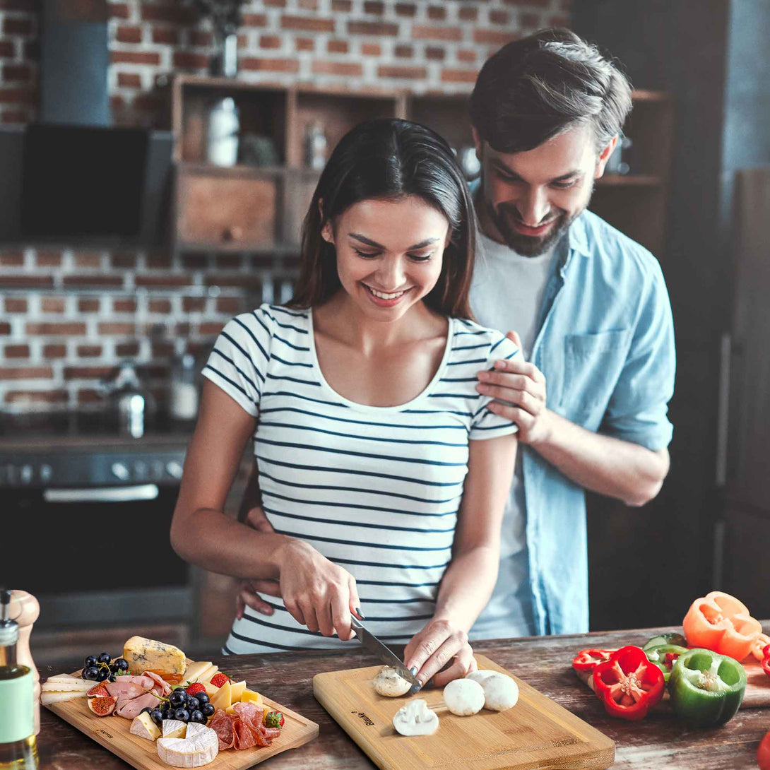 Las tablas de cortar de bambú BlauKe son ideales para muchas tareas de cocina. Se pueden utilizar para cortar cualquier tipo de alimentos, o como bandejas para servir aperitivos, frutas y/o embutidos